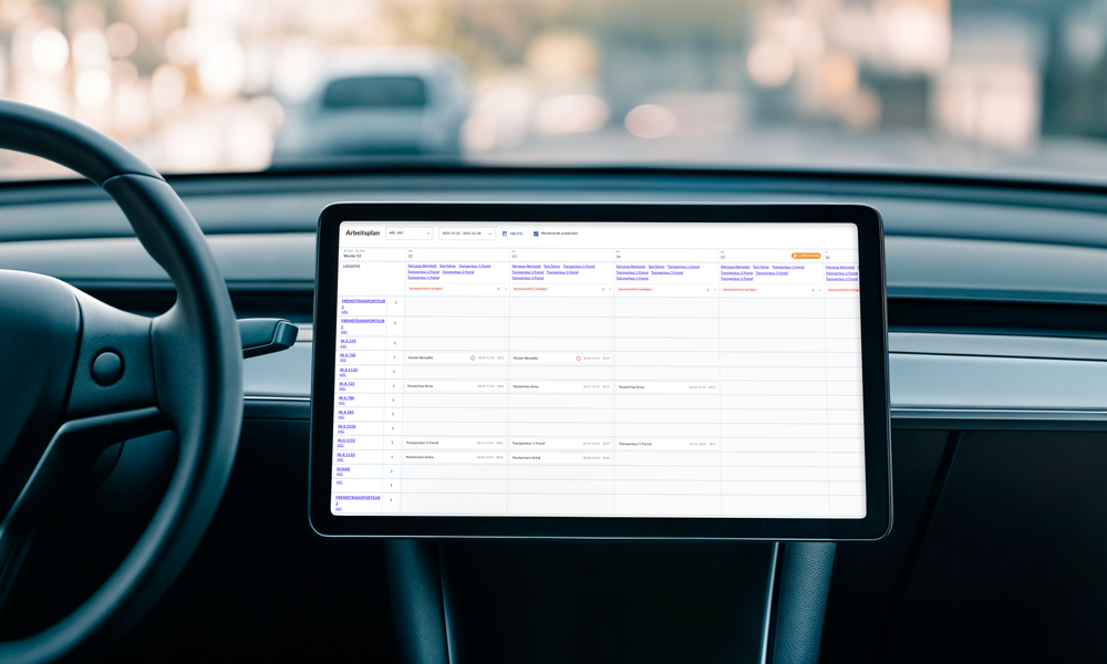 Die Fahrer- und Fahrzeugplanung erfolgt flexibel über ein zentrales Modul, das auch wiederkehrende Einsatzmuster unterstützt. Feste Zuordnungen können über Musterwochen abgebildet werden, während spontane Anpassungen jederzeit möglich bleiben. Fahrer können bei Bedarf eigenständig Fahrzeugwechsel durchführen. Diese Flexibilität gewährleistet eine optimale Auslastung aller Ressourcen.